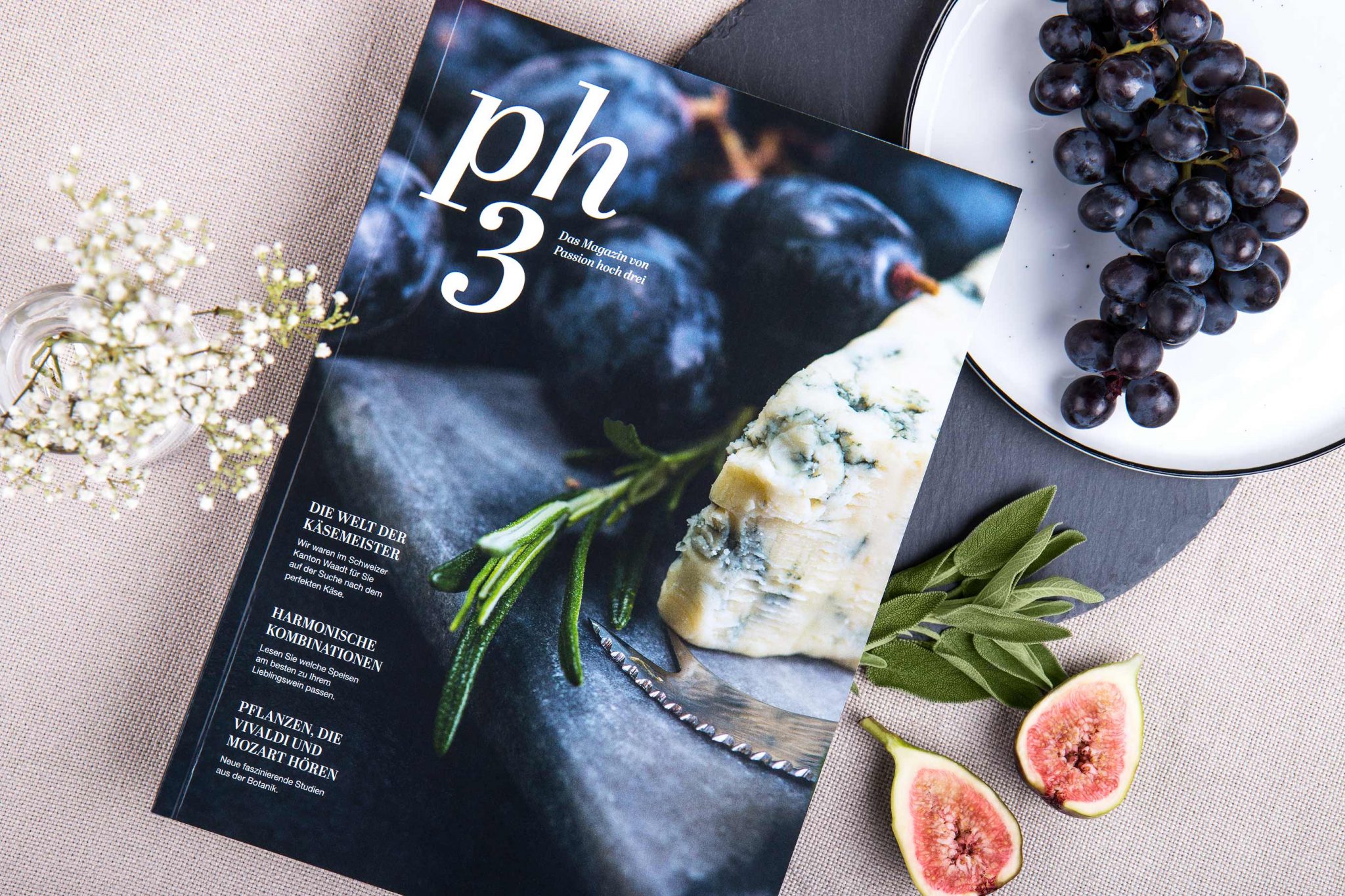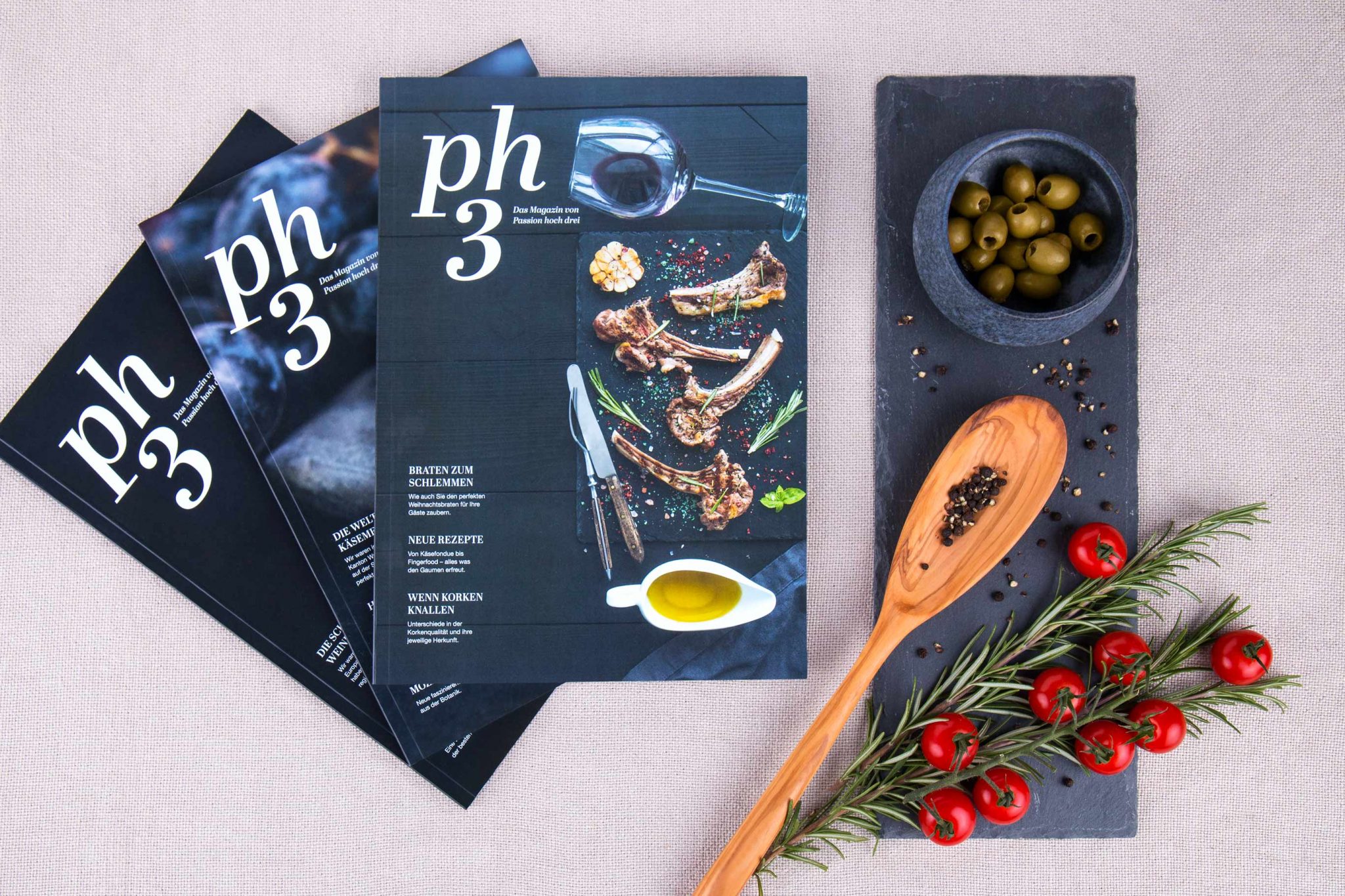 Imposante Bilder, eine klare Sprache und interessante Typografien erzeugen einen starken, emotionalen Spannungsbogen für Passion hoch drei. Im eigenen Kundenmagazin ph3 geben ausdrucksstarke Motive und gut geschriebene Storys dem Leser das Gefühl, auf eine Genussreise mitgenommen zu werden und die Welt rund um Wein, Champagner & Co. unmittelbar erleben zu dürfen.