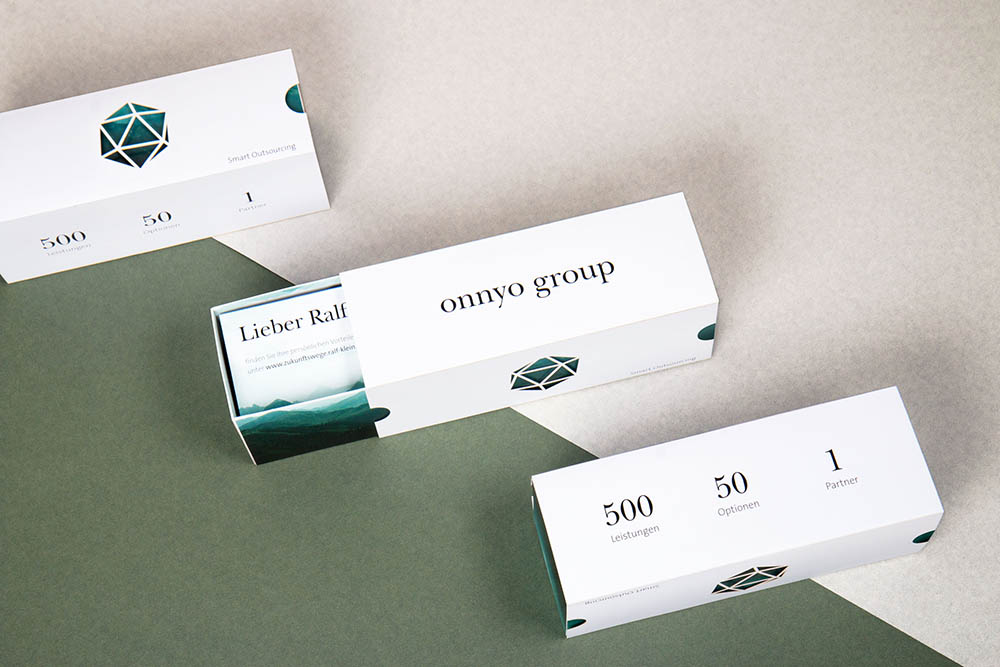 Wir hatten am Anfang nur ein weißes Blatt Papier – eine sehr reizvolle Ausgangssituation für jeden Markenstrategen und Designer. Die Marke musste nach einer geplanten Unternehmensausgliederung komplett neu entwickelt und positioniert werden. So kreierten wir die Onnyo Group als Dach einer eigenständigen Unternehmensgruppe. Klar, prägnant, smart.