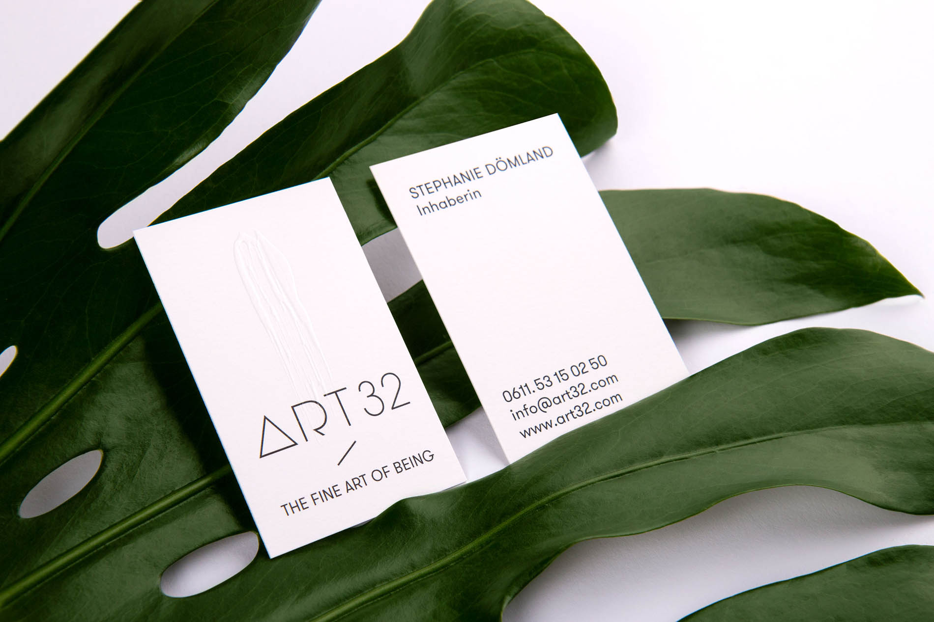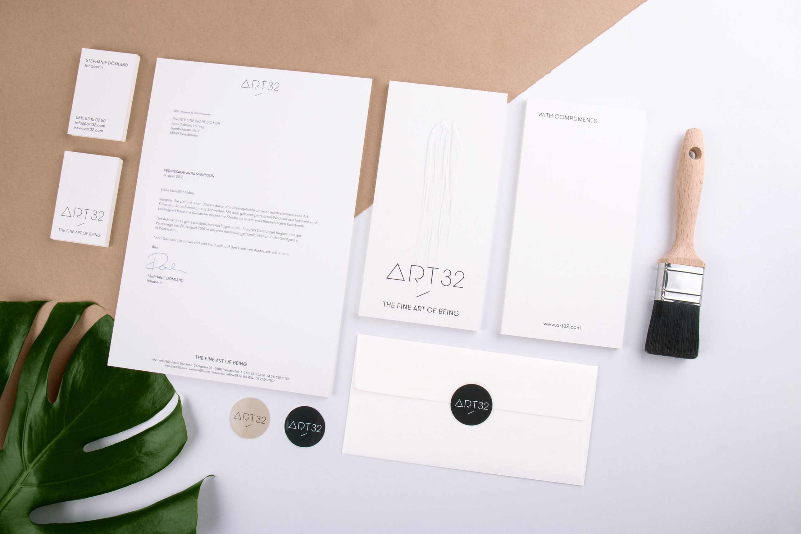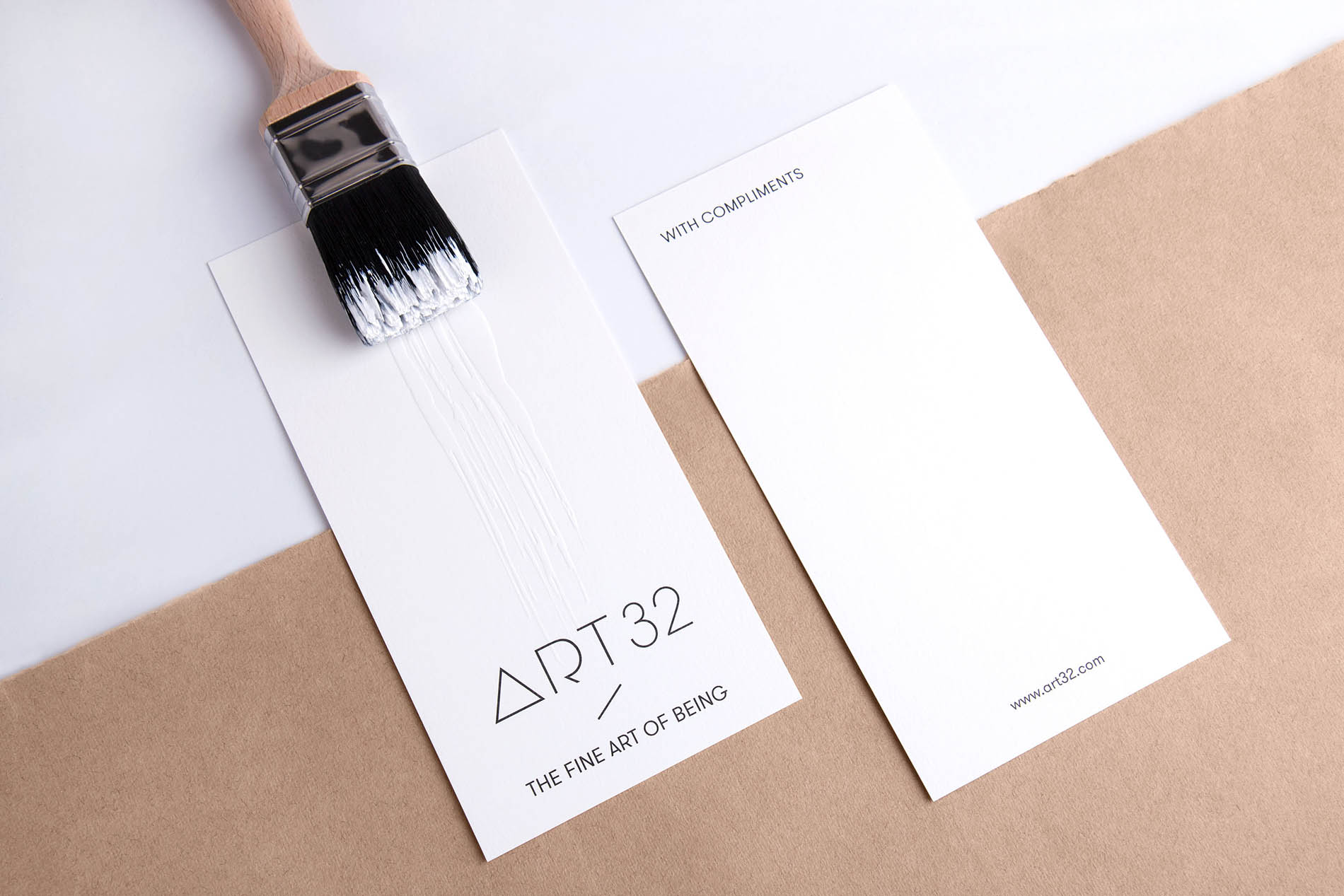 Wir waren uns von Beginn an einig: Der neue visuelle Markenauftritt von Art 32 sollte hell, reduziert und filigran sein. Ganz so wie die Galerie selbst – getragen von einer durchgängigen Leichtigkeit des Seins. Mit diesem Briefing entwickelten wir »the fine art of being«.